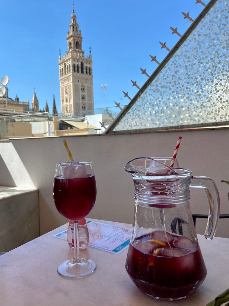 In the morning we headed over to Seville, our final stop in Spain before heading over to Portugal. My friends and I found a small local rooftop bar with a great view of the Giralda, the Seville Cathedral’s bell tower, and ordered some Tinto de Verano, a Spanish summer cocktail made of red wine and sparkling lemonade.