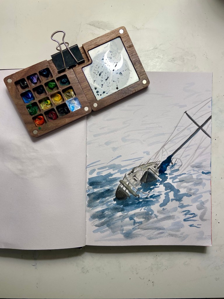 One of my favourite new additions to my sketchbook. I love painting wood grain and adding mossy patches which this photo had both. I also loved the contrast in the glossiness of the water to the roughness of the wood house and adding the shadows in. I might redraw this one in a larger size once I buy more watercolour paper.