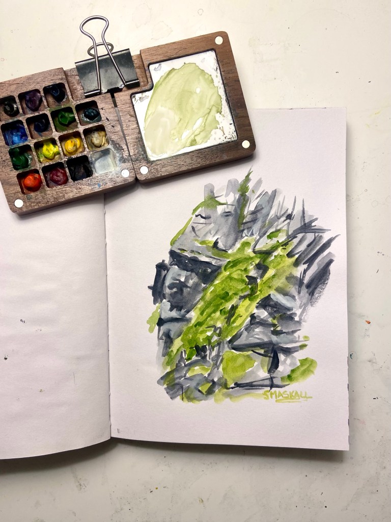 This quick moss on rocks sketch is part of an idea I’m working on for a larger piece. I’m still deciding on the size and medium but I’m sure there’ll be plenty more moss art coming up in my sketchbook and bigger paintings.