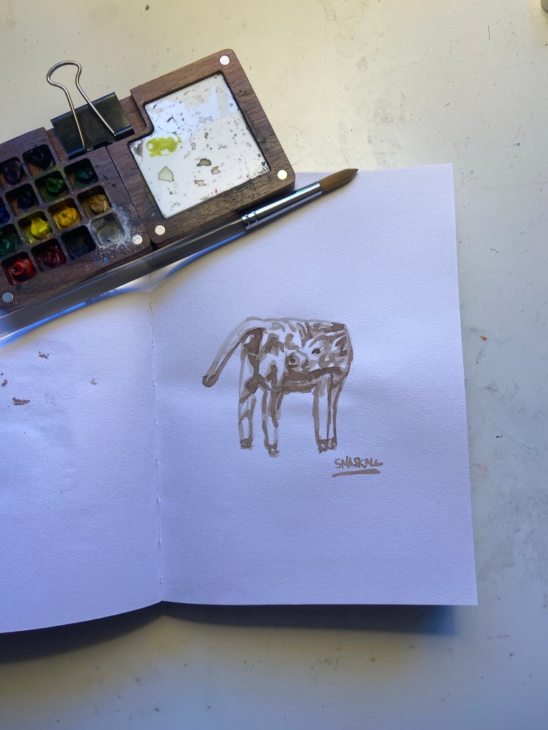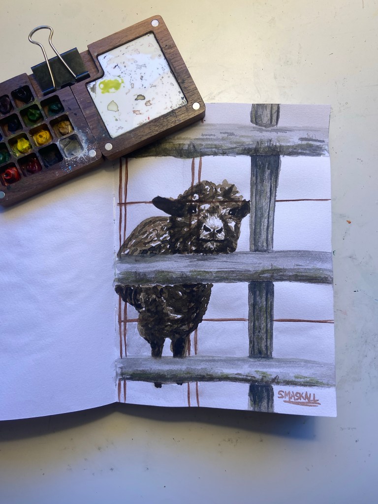 There’s been a lot of farm animal recently too – I really lived the first little lamb sketch I did – I’ve been trying to use more negative space to create a final image – and then did the cow in a similar style. The last sheep was originally going to be more minimal and although I also used a lot of blank space I also used a lot of layers of paint. This is one of my favourites as well since it turned out just so cute.