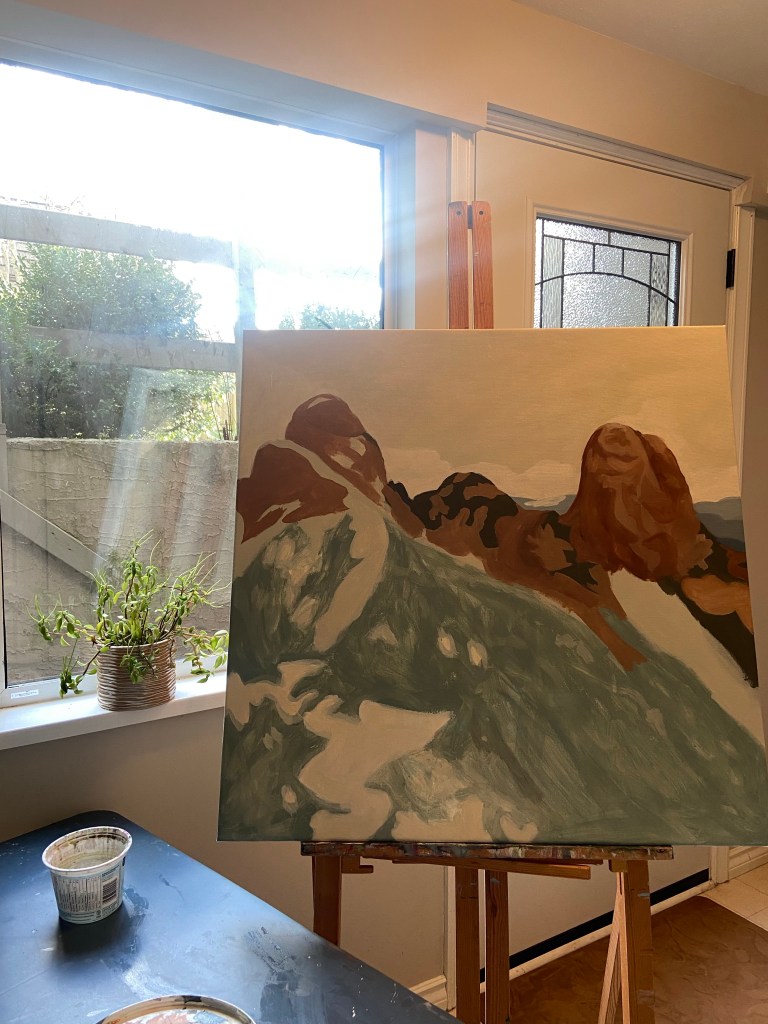 I did everything in this piece from hiking up to take the reference photos to stretching the canvas. Probably the easiest step of this whole process was blocking it out. I always weirdly love how paintings look when it’s just blobs of colour at the start, even though there’s not much skill involved.