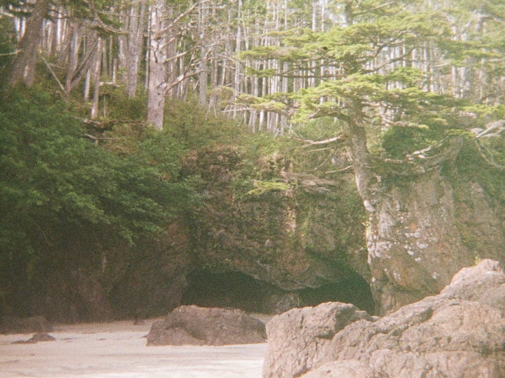 This series of photos was taken on a camping trip this summer to San Josef Bay. I always like to bring both cameras to travel with – my little pocket sized 110 to add its own flair to a quick snap and my 35 mm Canon for taking a higher quality image. My personal favourite from this series is taken in the interior of the Scarlet Ibis Pub, where we stopped for lunch on our way down to San Jo. The dim lighting created the perfect green light leak in the upper corner that looks like sunlight coming in through a window.
